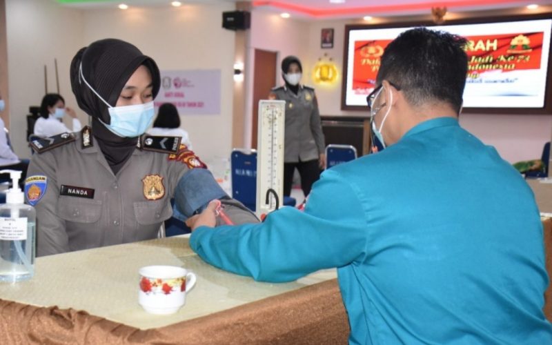 SINTANG KALBAR,KOMPAS Nasional– Dalam rangka memperingati Hari Bhayangkara ke 75, Polres Sintang menggelar kegiatan donor darah dengan tujuan membantu PMI dalam menyediakan stok darah yang mana dikarenakan wabah Covid-19 ini pasokan darah semakin menipis, Senin 28/6/21.