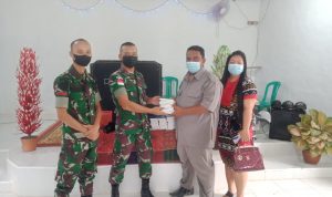 Sanggau, Kalbar – Kompasnasional.com.Dalam menyambut hari raya Natal, Satgas Pamtas Yonif Mekanis 643/Wns membagikan alkitab dan masker di Gereja Protestan Indonesia di Donggala (GPDI) Dusun. Sungai Daun, Desa.Malenggang, Kec. Sekayam, Kab. Sanggau.