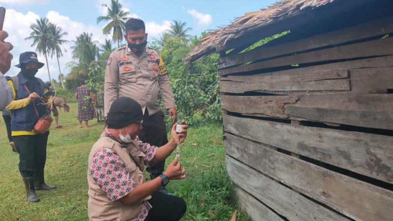 Ketapang Kalbar,KOMPAS NASIONAL.Com- Dalam rangka menekan penyebaran Penyakit Mulut dan Kuku terhadap hewan ternak di wilayah Kota Ketapang Kapolres Ketapang AKBP YANI PERMANA S.I.K., M.H Melalui Kasubbagdalops Bagops Polres Ketapang AKP Bambang Hendri Utomo laksanakan kegiatan Penyuntikan Vaksinasi PMK Terhadap Hewan Ternak,Bertempat di kelurahan Desa Suka Baru Kecamatan Benua Kayong Kabupaten Ketapang pada Kamis 21 Juli 2022.