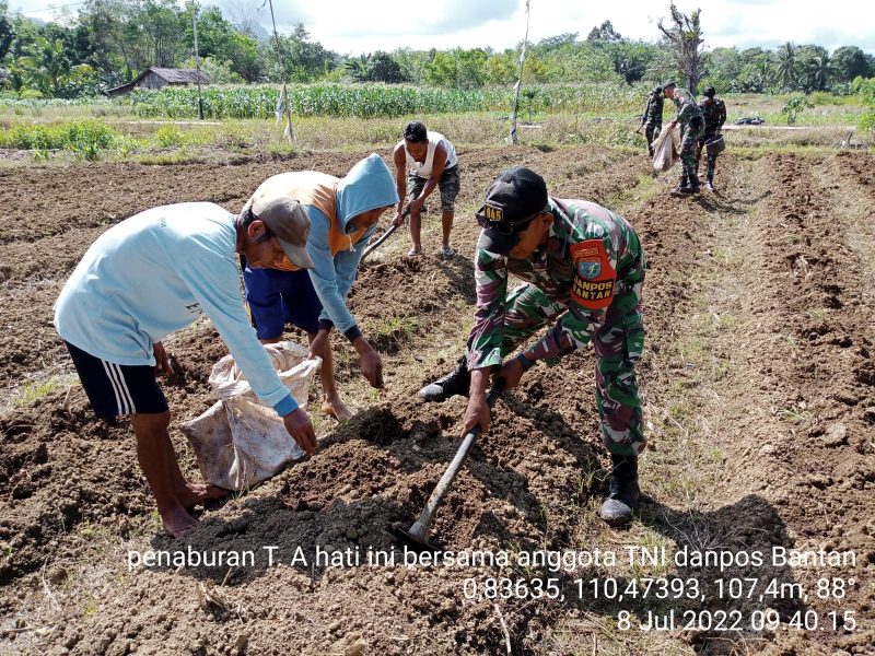Sanggau, KALBAR – Dalam rangka meningkatkan ketahanan pangan, Pos Bantan Satgas Pamtas Yonif 645/Gty melaksanakan kegiatan Pembinaan Teritorial Penyiapan Lahan ketahanan pangan untuk penanaman Jagung di lahan milik Pak. Hanafi seluas 70 m x 100 m, kegiatan tersebut berlangsung di Dsn. Rintau Ds. Bungkang Kec. Sekayam Kab. Sanggau. Pada Jumat, 08/07/2022.
