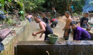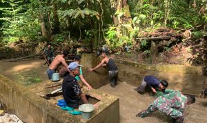 Selanjutnya dijelaskan Dansatgas kegiatan karya bhakti ini dilakukan oleh 5 orang anggota Pos Sentabeng dipimpin Serda Ambri bersama warga saling bahu membahu dan bergotong-royong melakukan pembersihan bendungan air bersih yang mengalami penyumbatan akibat penumpukan sampah daun, pasir dan batu.