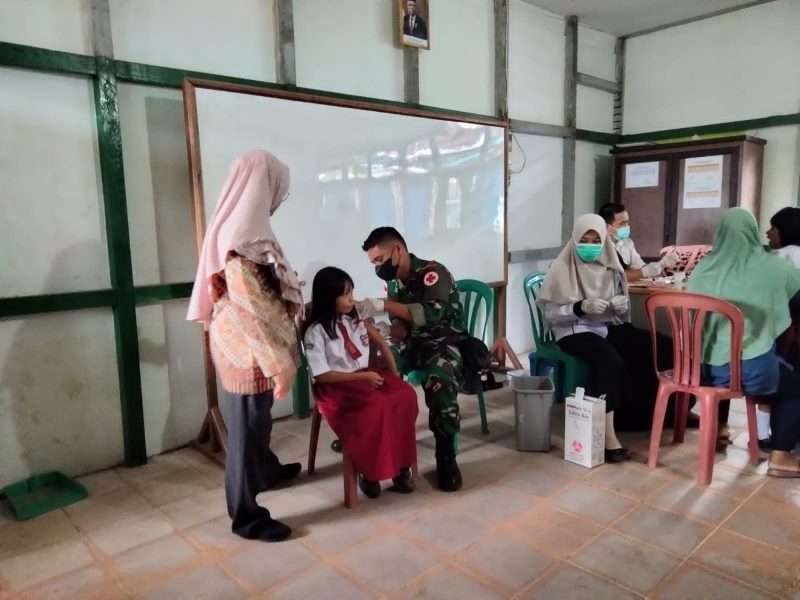 Sertu Aziz selaku Bintara Kesehatan Satgas Pos Kotis mengatakan imunisasi campak ini diberikan untuk anak usia dini di sekolah – sekolah setingkat SD/MI sederajat hingga SMP/MTs dan sederajat.