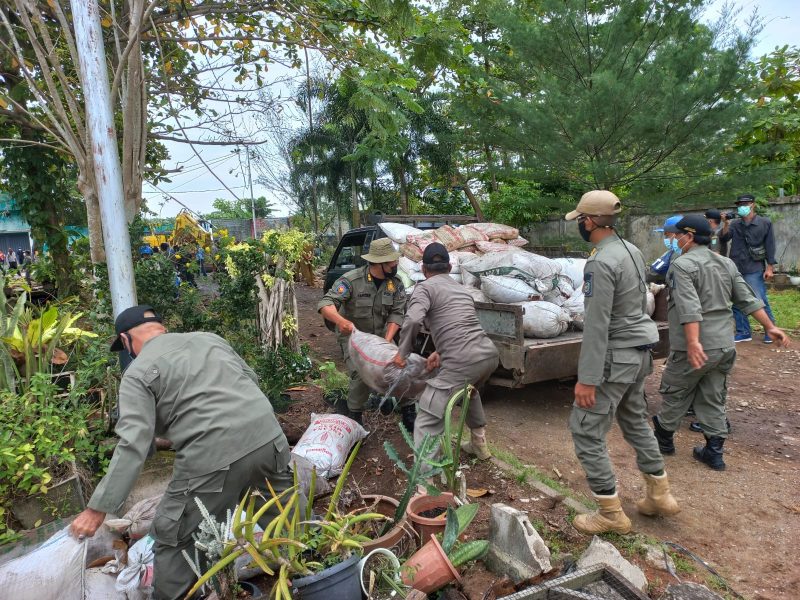 Dalam kegiatan ini, satu unit ekskavator turut dikerahkan untuk membongkar bangunan, warung atau lapak, dan gerobak yang masih berdiri tanpa izin dari Pejabat yang berwenang.