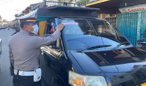 Kompasnasional.com Melawi Kalbar Polres Melawi melalui Satuan lalu Lintas melaksanakan kegiatan yang ditingkatkan dengan memberikan himbauan protokol Kesehatan dengan melakukan himbauan kepengendara kendaraan bermotor dan melakukan pemasangan stiker “AYO PAKAI MASKER” dari Satlantas Polres Melawi, di Jalan Juang KM 2 Nanga Pinoh Melawi Kalbar. Selasa (6/8).