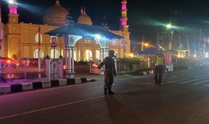 Sambas – Kompas Nasional.com.Koramil 1208-01/Sambas bersama anggota PoLantas dan Polres Sambas melaksanakan pengamanan umat Muslim yang sedang melaksanakan ibadah sholat Taraweh yang di Masjid Agung Babul Jannah, Jln. Gusti Hamzah, Desa Pasar Melayu, Kec. Sambas Kabupaten Sambas Kakimantan Barat pada Kamis malam (6/05/21).