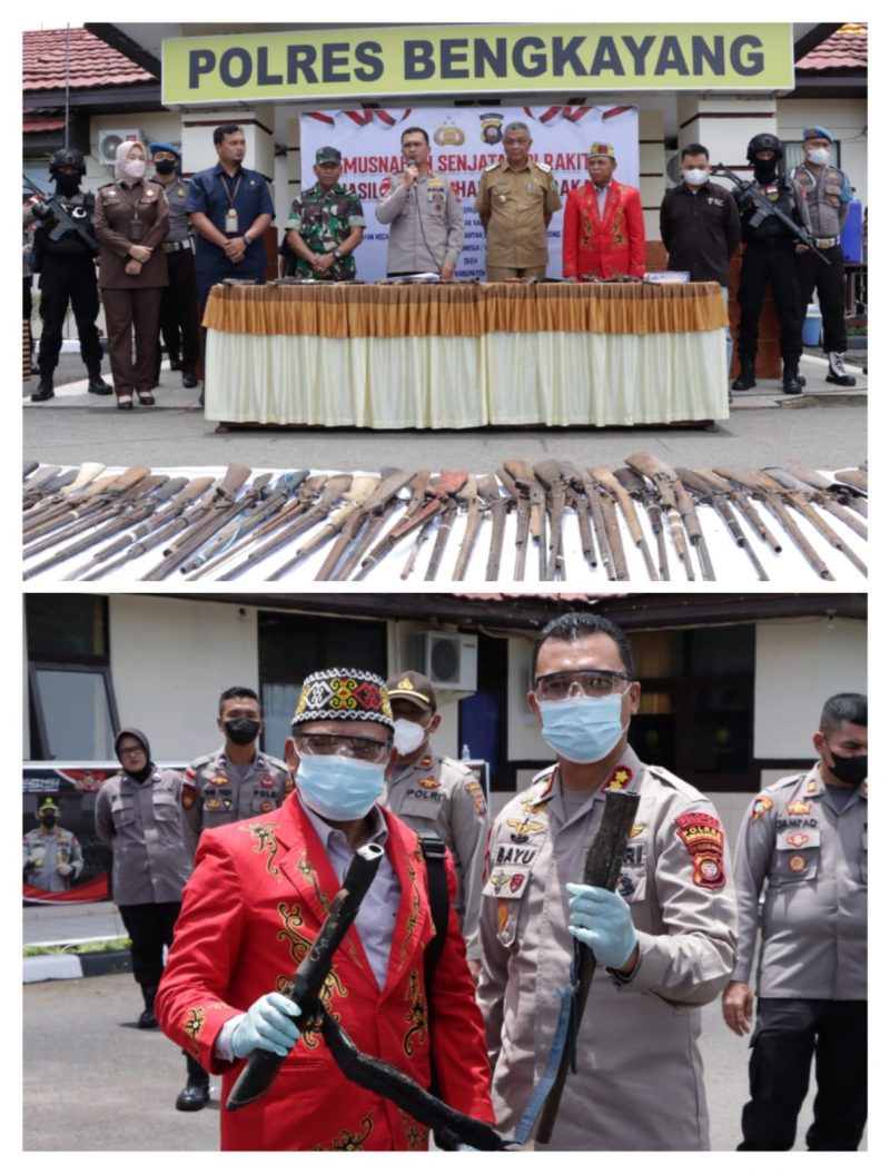 “Saya memberikan apresiasi setinggi-tingginya kepada Ketua DAD Kabupaten dan Kecamatan yang telah menyerahkan senjata api rakitan dan organik yang diterima dari masyarakat. Ini merupakan langkah tepat untuk menjaga kamtibmas di Kabupaten Bengkayang”, kata Kapolres.