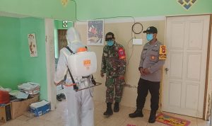 Dengan kegiatan sterilisasi di fasilitas umum ini TNI dan Polri melaksnakan operasi pengawalan kesehatan dengan cara melakukan penyemprotan desinfektan di Kantor Desa Tumok Manggis, Jakan Masudi, Gang Timor, Kecamatan Sambas, Kabupaten Sambas, beberapa waktu lalu.