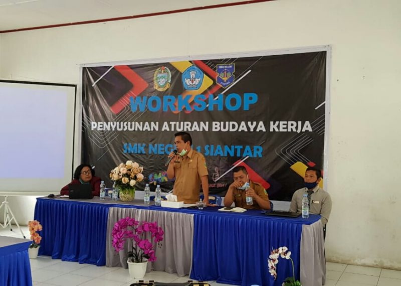 Sekolah Menengah Kejuruan Negeri I (SMKN 1) Jalan Sangnawalu, Kecamatan Siantar, Kabupaten Simalungun, Provinsi Sumatera Utara adakan Workshop Penyusunan Aturan Budaya Kerja, Senin (10/11/2020)