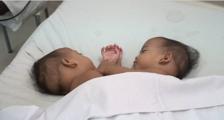 Rizky menerangkan, kondisi kedua bayi berusia 1 tahun 1 bulan itu mengalami perdempetan sebagian besar di daerah perut dan sebagian kecil di bagian dada. Sedangkan bagian dalam tubuh yang menempel terutama adalah hati dan dinding jantung.