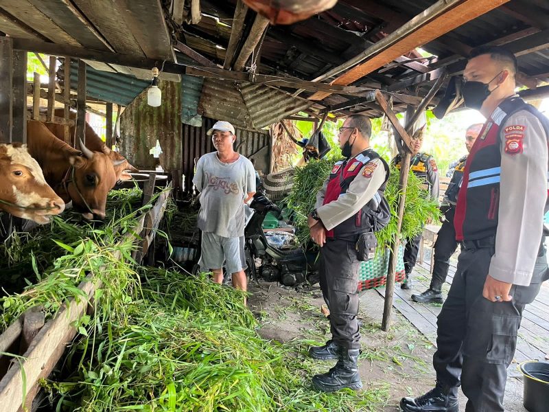 Pontianak Kalbar,KOMPAS NASIONAL.Com- Satgas Ops Aman Nusa II yang dipimpin Kasatgas Ops 2 penanganan AKBP Riki Renerika Rinanto,S.E. melakukan pengecekan hewan ternak dan memberikan edukasi tentang wabah Penyakit Mulut dan Kuku (PMK) Di wilayah jalan petani. Sungai bangkong.Kec Pontianak kota Dengan Jumlah Hewan ternak Sapi 5 Ekor dalam keadaan sehat. Selasa (26/7/2022).