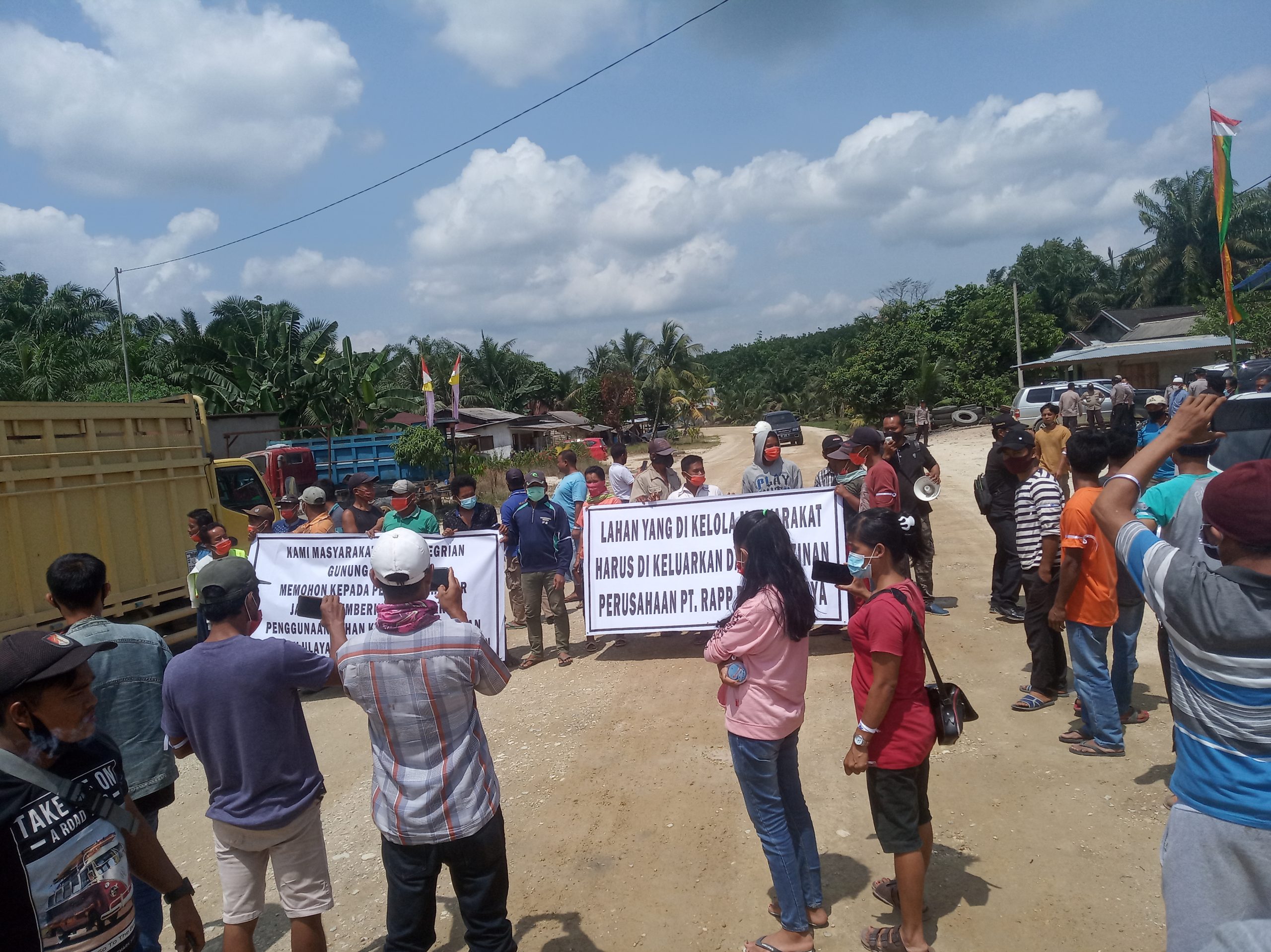 Terpantau di lapangan Masyarakat  melakukan blokade kendaraan perusahan PT. RAPP dan Grupnya. Masyarakat juga membentangkan sepanduk di jalan dengan tulisan ” Kami masyarakat adat kenegerian gunung sahilan. Memohon kepada pemerintah agar jangan memberikan izin baru penggunaan lahan kepada perusahaan di tanah ulayat kenegerian gunung sahilan “