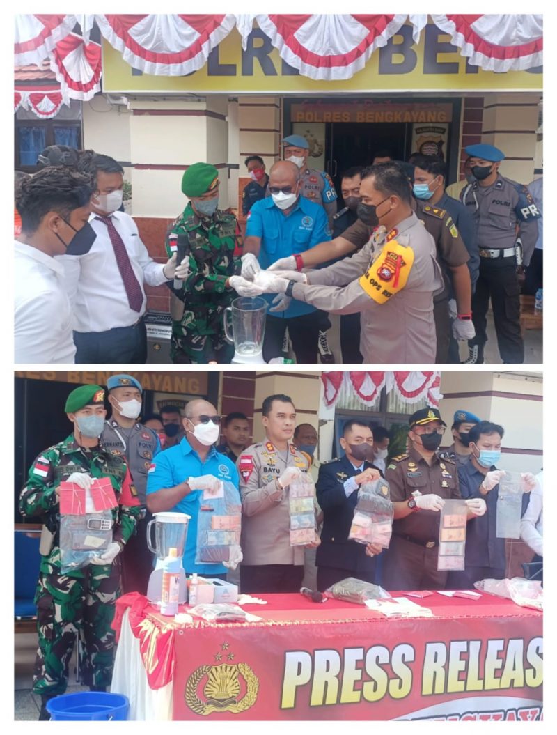 Wadan Satgas Mengatakan, Kegiatan yang dilaksanakan Press Release ini mengenai pengungkapan hasil penangkapan kasus Narkotika oleh Kapolres Bengkayang, terdapat 6 (enam) tersangka yg berhasil ditangkap dari 3 kasus dan Para tersangka dijerat dan melanggar Pasal 114 ayat 2 dan 112 ayat 2 tentang Narkotika.