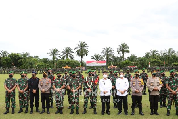 Di wilayah perbatasan RI-PNG dengan itu selaku Pangdam I Bukit Barisan saya menyampaikan dan mengucapkan rasa terima kasih dan bangga serta penghargaan yang setinggi-tingginya kepada seluruh anggota Satuan Tugas Batalyon Infanteri 122 Tombak Sakti atas dedikasi dan loyalitas nya dalam pelaksanaan tugas Operasi Pengamanan Perbatasan RI-PNG di daerah Papua selanjutnya laksanakanlah konsiliasi pengecekan dan pemeliharaan terhadap alat perlengkapan senjata sama trail yang telah kalian gunakan selama bertugas operasi jangan ada satupun material yang hilang ataupun tidak terdata saya juga ingin mengingatkan bahwa manfaatkan kesempatan ini untuk berkumpul kembali dengan keluarga untuk melepas rasa kangen dan dihindari sikap sikap dan perilaku yang dapat anda mengenai keberhasilan bagi pelaksanaan satuan tugas ini jaga kesehatan dan selalu mematuhi protokol kesehatan. Mari kita lanjutkan tugas tugas berikutnya.